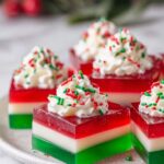 Christmas Ribbon Salad is a festive and colorful layered gelatin dessert featuring lime, lemon, and cherry Jell-O with a creamy marshmallow and cream cheese middle layer. Perfect for holiday gatherings, this refreshing salad is sweet, tangy, and visually stunning with distinct stripes of flavor and texture.