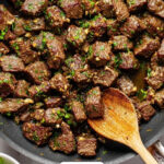 Tender, flavorful steak bites seasoned with garlic, butter, and fresh herbs. This quick and easy weeknight dinner comes together in just 20 minutes and can be adapted to Paleo, Whole30, or dairy-free diets by using ghee instead of butter.