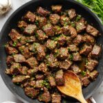 Tender, flavorful steak bites seasoned with garlic, butter, and fresh herbs. This quick and easy weeknight dinner comes together in just 20 minutes and can be adapted to Paleo, Whole30, or dairy-free diets by using ghee instead of butter.