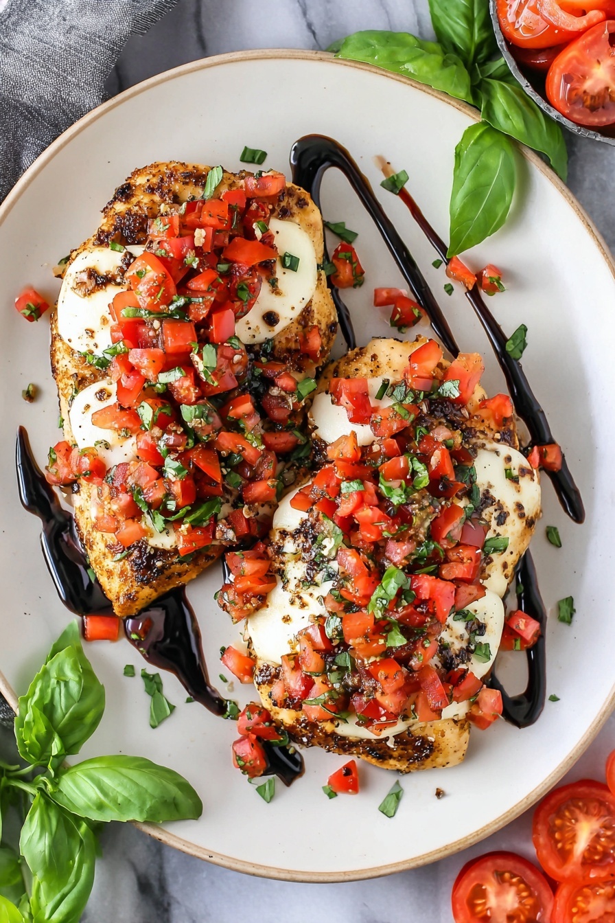 If you're craving a dish that’s bursting with fresh flavors and easy to make, you’re going to love this Grilled Bruschetta Chicken Recipe. It’s juicy grilled chicken topped with a bright tomato basil topping, melty mozzarella, and a sweet tangy balsamic glaze—trust me, it’s a total winner on the dinner table.