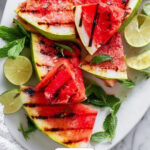 Grilled Watermelon is a smoky, sweet, and juicy summer side dish featuring watermelon wedges charred to perfection on the grill, then garnished with fresh lime juice, mint leaves, flaky sea salt, and optional feta cheese and honey for a delightful balance of flavors.