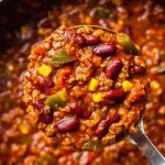 - Serve with Toppings: Once cooked, serve the chili hot topped with shredded cheese, green onions, cilantro, and a dollop of Greek yogurt or sour cream. Add optional avocado slices and tortilla chips as desired for extra texture and flavor.