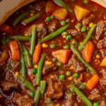 Absolutely! Brown the beef first, then transfer everything to a slow cooker and cook on low for 7-8 hours. Add green beans and peas during the last 30 minutes to keep their texture fresh.