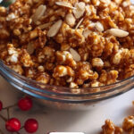 Delicious Christmas Popcorn Candy featuring crunchy caramel-coated popcorn infused with warm holiday spices and toasted almonds. This festive treat is perfect for sharing during the holiday season and stays crispy for weeks.