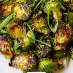 Spoon the warm honey balsamic glaze over your roasted Brussels sprouts and gently toss to coat each piece evenly, or serve the sauce on the side if you prefer to dip. Finish by sprinkling chopped green onions and a little lemon zest for vibrancy and freshness that balances the rich flavors.