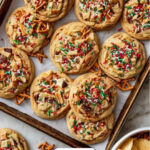Kitchen Sink Cookies are a delightful and loaded treat packed with a mix of chocolate chips, toffee bits, potato chips, pretzels, and festive holiday jimmies. These thick, chewy cookies combine sweet, salty, and crunchy textures for a truly indulgent experience perfect for any occasion.