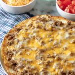- Layer the Bake: Place one flour tortilla at the bottom of the prepared pan. Spread about one-third of the seasoned beef mixture evenly over the tortilla. Sprinkle approximately one-third of the shredded Mexican cheese on top. Repeat this layering process two more times, finishing with a layer of cheese on top.