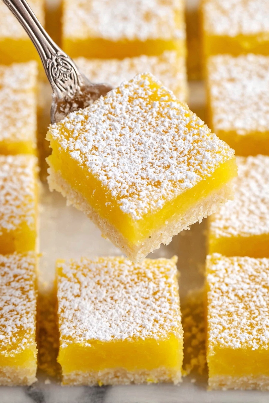 - Chill the lemon bars completely before slicing to achieve clean, even bars.
