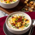 This Loaded Baked Potato Soup with Crispy Skins Recipe is one of those dishes I turn to when I want something simple, satisfying, and a little special. The crispy skins add that extra wow factor every single time, and I hope you’ll find yourself making this again and again, maybe even passing it along as a family favorite like I did. Give it a try—you won’t regret the cozy, comforting vibes it brings to your kitchen table.
