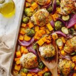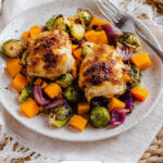 A delicious and easy Sheet Pan Maple Glazed Chicken with Vegetables combines tender, juicy chicken thighs with roasted butternut squash, brussels sprouts, and red onion, all coated in a savory-sweet maple soy glaze. This one-pan meal is quick to prepare and perfect for a wholesome weeknight dinner.