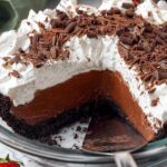 - Garnish and Serve: Sprinkle chocolate shavings on top for garnish. Serve the pie chilled, cutting into slices and wiping the knife clean between cuts for neat slices.