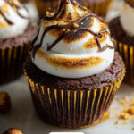 S’mores Cupcakes with Nutella combine a graham cracker crust base, rich chocolate cupcake, a creamy Nutella filling, and fluffy marshmallow frosting for a delightful dessert that captures the classic campfire treat in cupcake form.