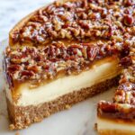 I always recommend whipping up this simple praline sauce—chopped pecans, brown sugar, butter, corn syrup, and spices warmed until sticky and glossy. Stir in cream and vanilla at the end for richness. Let it cool slightly before drizzling over the chilled pie and topping with coarse sugar for an irresistible crunch and sparkle.