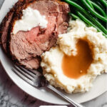 This prime rib roast and horseradish sauce use simple, fresh ingredients that enhance each other beautifully. Choosing quality herbs and fresh garlic makes all the difference when building those rich, savory notes in your roast.