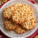 - Bake the cookies: Arrange the pine nut-coated cookies on the prepared baking sheet, spacing them about 2 inches apart. Bake for 18 minutes or until the edges and pine nuts turn golden.