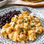 - Finish with Queso: When rice is done, stir in white queso dip and milk. Fluff everything together gently with a fork until creamy and well combined. Serve warm.