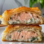 This Spinach Feta Salmon in Phyllo is a delightful and elegant dish featuring tender salmon fillets wrapped in crispy phyllo dough with a creamy spinach and feta filling. Perfect for a fancy dinner or special occasion, it combines Mediterranean flavors with flaky pastry for a delicious main course.