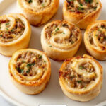 Sausage Pinwheels are a savory, crowd-pleasing appetizer featuring a flavorful breakfast sausage and cream cheese filling rolled inside crescent roll dough, baked until golden and crispy. Perfect for brunch, parties, or snacks.