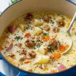 A hearty and comforting sausage potato soup packed with Italian sausage, red potatoes, and a creamy broth, seasoned with herbs and spices for a flavorful one-pot meal perfect for cozy days.