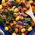 This Sheet Pan Butternut Squash and Sausage Gnocchi recipe is a deliciously easy to prepare meal combining tender roasted butternut squash, flavorful turkey sausage, and pillowy gnocchi, all drizzled with a tangy miso-cider sauce. Perfect for a weeknight dinner, this tray bake requires minimal hands-on time and delivers hearty, comforting flavors in one pan.