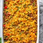 - Transfer and Bake: Pour the casserole mixture into the prepared baking dish. Evenly sprinkle the remaining shredded cheddar cheese on top. Cover the dish with foil and bake for 30 to 35 minutes, or until the cheese is melted and bubbling.