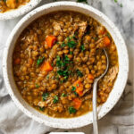 This Slow Cooker Lentil and Chicken Soup is a hearty and comforting dish combining tender chicken thighs, nutritious lentils, and vibrant spices, slow-cooked to perfection for a flavorful and protein-packed meal.