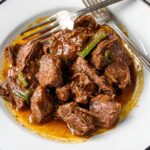 - For stovetop cooking, after searing beef, add all ingredients with an extra ½ cup beef broth (1 ½ cups total) and simmer covered for 3 ½ hours till tender.