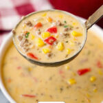 Cowboy Soup is a hearty and creamy dish packed with ground beef, vegetables, beans, and a blend of cheeses for a rich, comforting meal. This flavorful soup combines potatoes, corn, black beans, and green chiles in a spiced broth thickened with a velvety roux and Velveeta cheese. Perfect for chilly days or a satisfying family dinner.