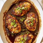 - Rest and Serve: Remove the chicken from the oven and let it rest for about 5 minutes to allow the juices to redistribute. Garnish with chopped green onion and parsley if using. Serve with your favorite side dish such as rice, slaw, or roasted vegetables.