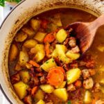 Dublin Coddle is a traditional Irish stew featuring hearty layers of bacon, pork sausages, onions, potatoes, and carrots simmered slowly in a flavorful broth enriched with Guinness stout. This comforting one-pot meal is perfect for a cozy dinner and offers rich, savory flavors with tender textures after slow braising in the oven.
