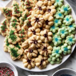 These spritz cookies are buttery, tender, and perfectly shaped using a cookie press. Flavored with vanilla and almond extracts and optionally decorated with sprinkles or chocolate, they make a festive and classic treat perfect for any occasion.