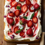 Spread the cream cheese buttercream evenly over your cooled cake, then dollop a few spoonfuls of the reserved strawberry rose compote on top. Using a knife or skewer, gently swirl the compote into the frosting for an elegant marbled look. For the finishing touches, garnish with fresh strawberry slices and a sprinkle of dried rose petals for that extra wow factor. This cake is as beautiful as it is delicious!