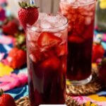 For special occasions, I like serving this strawberry sweet tea in mason jars or glass bottles with fun paper straws. A layered ice cube with a tiny strawberry inside also wows guests and keeps each sip cold and flavorful.