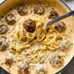 - Cook Noodles and Meatballs: Add 8 ounces egg noodles and cook until noodles are nearly tender, about 8 minutes. Return the browned meatballs to the pot and cook on low until noodles are fully tender and meatballs are heated through.