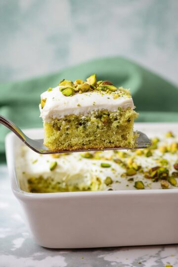 - Allow the cake to cool completely before frosting to avoid melting the whipped pistachio frosting.