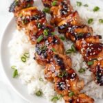 Sprinkle thinly sliced green onions and toasted sesame seeds over the skewers while they’re still warm. This gives each bite a fresh crunch and extra depth. Serve immediately for the best experience—those beautifully sticky, tender pieces won’t wait to impress your taste buds.