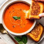 Classic tomato soup paired with a melty grilled cheese sandwich, perfect for a comforting meal. The soup is creamy, rich, and made with fresh ingredients, while the grilled cheese can be prepared on the stovetop or oven for a crispy golden finish.