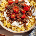 Delicious Turkish Pasta combines al dente farfalle with a flavorful ground beef meat sauce, a tangy garlic yogurt sauce, and a spicy buttery finish. This quick weeknight dinner recipe is easy to make and bursting with rich Middle Eastern-inspired flavors.