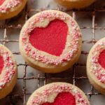 These Valentine’s Slice and Bake Heart Cookies are a charming and delicious treat perfect for celebrating love. Featuring a tender buttery dough tinted with vibrant red food coloring, these stacked heart cookies are rolled in festive pink and white sprinkles for a delightful crunch and visual appeal. The recipe involves chilling and freezing steps to ensure the perfect sliceable log, yielding beautifully shaped cookies that are crisp on the edges and soft inside.