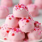 Delightful Valentine’s Oreo Truffles made with golden Oreo cookies, cream cheese, and coated in smooth vanilla candy coating, topped with festive Valentine sprinkles. These bite-sized treats are perfect for sharing or gifting on special occasions.