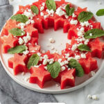 - Assemble the Wreath: Arrange the watermelon triangles evenly around the perimeter of a large platter, interspersing mint leaves as you go to form a wreath shape. Place the watermelon stars on top and sprinkle with crumbled feta cheese.