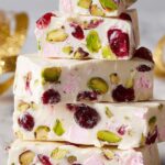 White Christmas Rocky Road is a festive no-bake treat combining smooth white chocolate with marshmallows, toasted pistachios, glacé cherries, and desiccated coconut. This easy-to-make candy is perfect for gifting or enjoying as a sweet holiday snack.