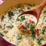 Zuppa Toscana is a hearty and comforting Italian-inspired soup featuring spicy Italian sausage, tender russet potatoes, and nutritious kale simmered in a rich, creamy broth. Perfect for a warming lunch or dinner, this flavorful soup combines savory seasonings and creamy textures with a touch of heat and the freshness of greens, making it a satisfying meal especially paired with crusty bread.